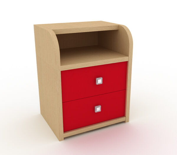 Ένα πολύ ιδιαίτερο παιδικό κρεβάτι που διακρίνεται για την καμπυλότητα στις ακμές του και τη διχρωμία του σε κεφαλάρι και ποδαρικό.