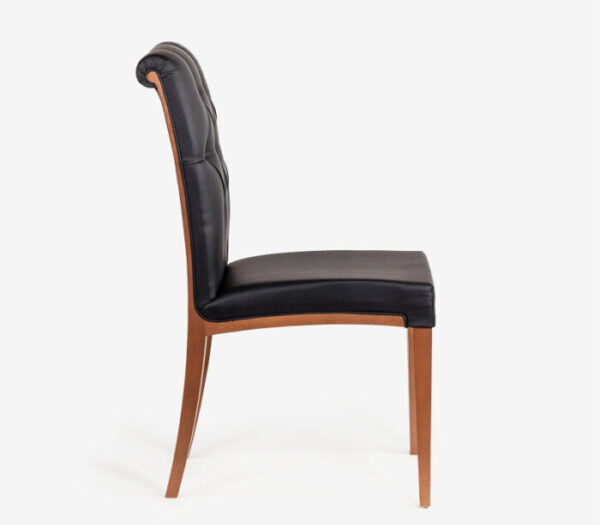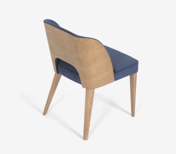 Καρέκλα υψηλής αισθητικής με μοντέρνο σχεδιασμό, από ξύλινο σκελετό σε φυσικό χρώμα, με εξαιρετική ποιότητα κατασκευής, πολύ καλή συμμετρία και άνετο κάθισμα που αγκαλιάζει την πλάτη.